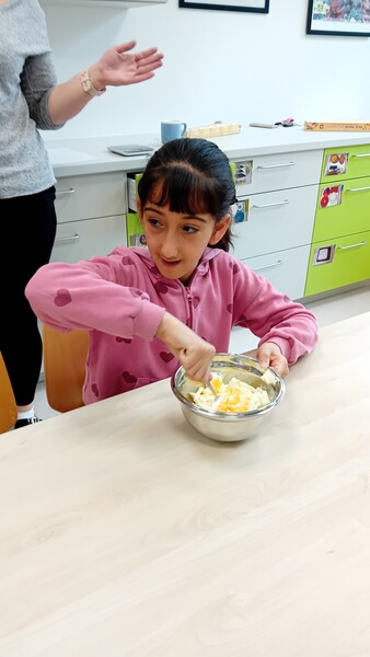 Die S1 Klasse ist mit vollem Elan in das neue Schuljahr gestartet. Bei der mittlerweile traditionellen Backwoche konnten verschiedene Teige für Kuchen und Brot ausprobiert werden. Vom saisonalen Apfelkuchen, der herbstlichen Zimtschnecke und einem Buttermilchbrot mit selbst gemachtem Eiaufstrich war für jeden Geschmack etwas dabei. Die Wartezeit vor dem Ofen war da oft sehr lange. Zu Allerheiligen konnte dann auch jedes Kind einen selbst geflochtenen Zopf mit nach Hause nehmen.